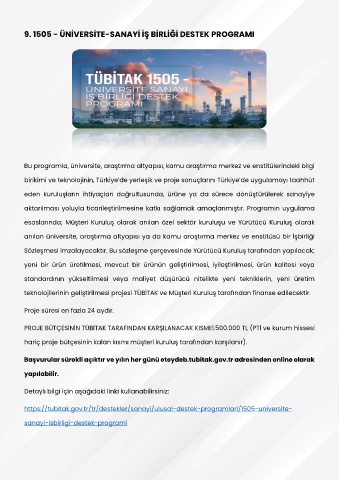 9. 1505 - ÜNİVERSİTE-SANAYİ İŞ BİRLİĞİ DESTEK PROGRAMI