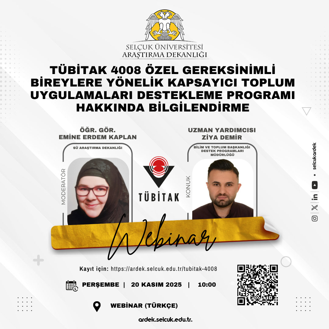 Kayıt Linki: https://ardek.selcuk.edu.tr/tubitak-4008