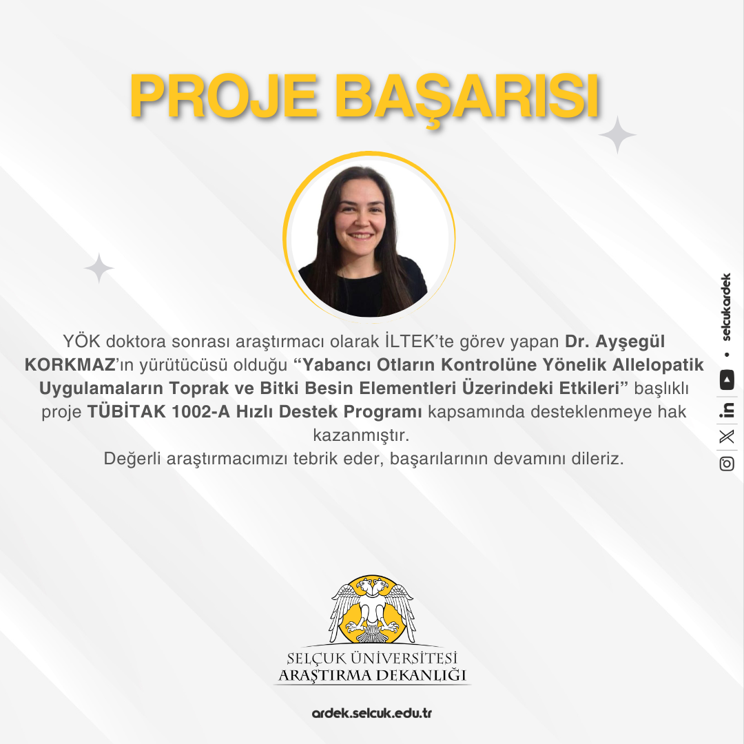 Selçuk Üniversitesi Araştırma Dekanlığı olarak, Prof. Dr. Yasemin ÖZTEKİN hocamızın eğitmenliğinde hazırlanan “2025 Yılı TÜBİTAK 2209 Üniversite Öğrencileri Proje Destekleme…