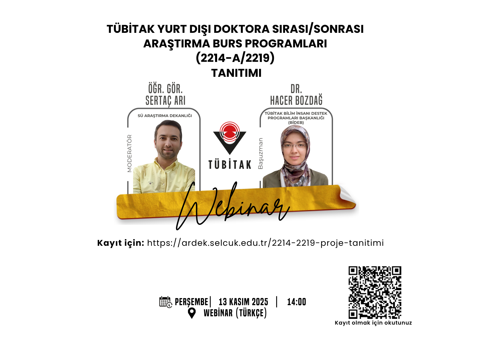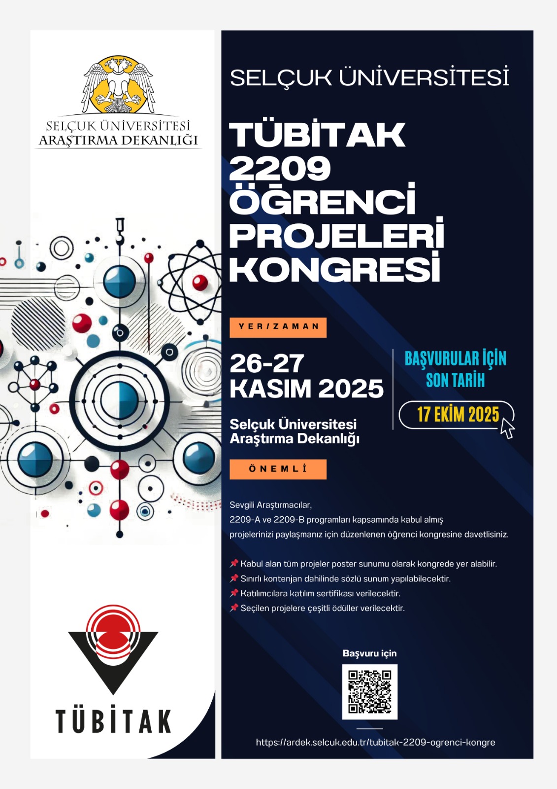 Selçuk Üniversitesi Araştırma Dekanlığı tarafından 26-27 Kasım 2025 tarihlerinde düzenlenecek TÜBİTAK 2209…
