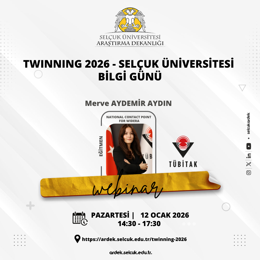 Selçuk Üniversitesine özel TÜBİTAK tarafından düzenlenen Ufuk Avrupa Twinning Bilgi Gününe davetlisiniz.Kayıt…