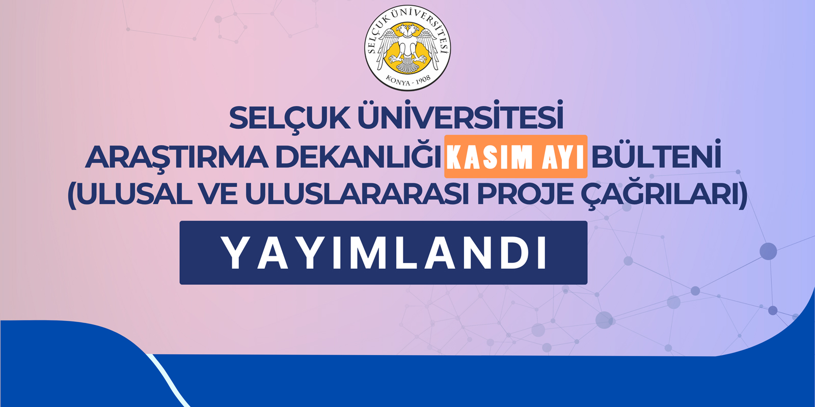 Selçuk Üniversitesi Araştırma Dekanlığı Proje Ofisi tarafından proje çağrıları bülteni yayımlandı. Ulusal ve uluslararası proje çağrılarının detaylarına ulaşmak için bülteni…