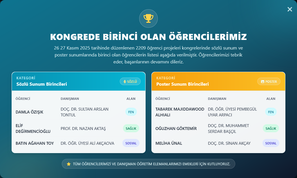 Selçuk Üniversitesi 2209 Öğrenci Projeleri Kongresi’nde dereceye giren öğrencilere ve danışmanlarına plaket ve Teşekkür Belgesi takdim edildi. Selçuk Üniversitesi tarafından…