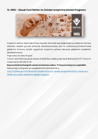 13. 1005 - Ulusal Yeni Fikirler Ve Ürünler Araştırma Destek Programı