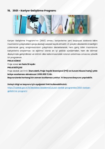 15.  3501 - Kariyer Geliştirme Programı
