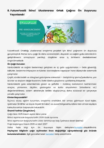 8. FutureFoodS İkinci Uluslararası Ortak Çağrısı Ön Duyurusu
