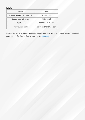 Başvuru kılavuzu ve gerekli belgeler Echoes web sayfasındaki Başvuru Portalı üzerinden