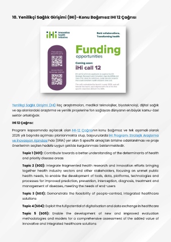 10. Yenilikçi Sağlık Girişimi (IHI)-Konu Bağımsız IHI 12 Çağrısı