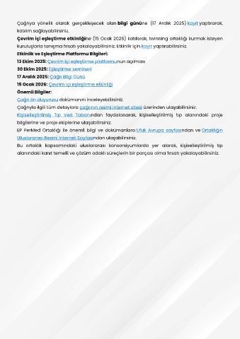 Çağrıya yönelik olarak gerçekleşecek olan bilgi gününe (17 Aralık 2025) kayıt yaptırarak,