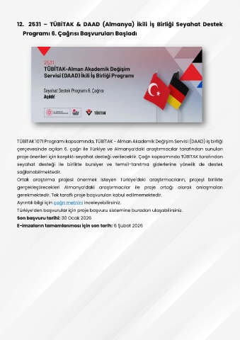 12. 2531 – TÜBİTAK & DAAD (Almanya) İkili İş Birliği Seyahat Destek
