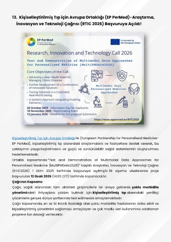 13. Kişiselleştirilmiş Tıp için Avrupa Ortaklığı (EP PerMed)-Araştırma,