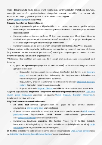 Çağrıya başvuru sürecinde konsorsiyum kurulmasına yardımcı olacak ortak arama