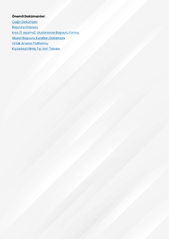 Önemli Dokümanlar: Çağrı Dokümanı Başvuru Kılavuzu Kısa (1. aşama) Uluslararası Başvuru Formu Ulusal Başvuru Kuralları Dokümanı Ortak Arama Platformu Kişiselleştirilmiş Tıp Veri Tabanı