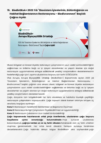 Biodivconnect" başlıklı çağrının ana amacı; ulusal, bölgesel ve küresel ölçekte restorasyon