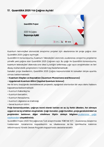 17. QuantERA 2025 Yılı Çağrısı Açıldı!