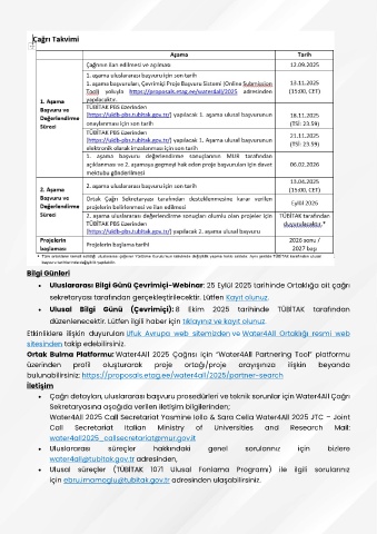 Çağrı detayları, uluslararası başvuru prosedürleri ve teknik sorunlar için Water4All Çağrı