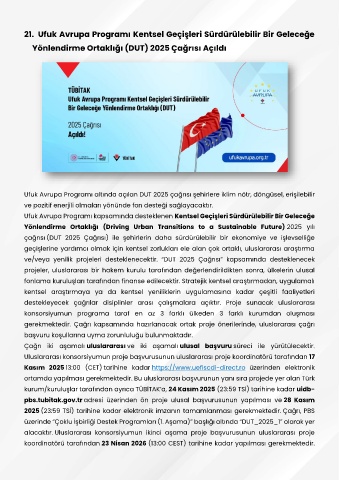 ve/veya yenilik projeleri desteklenecektir. “DUT 2025 Çağrısı” kapsamında desteklenecek