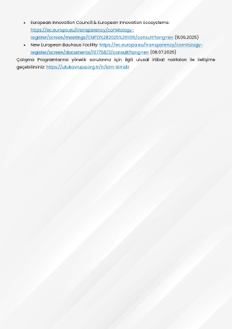 Çalışma Programlarına yönelik sorularınız için ilgili ulusal irtibat noktaları ile iletişime