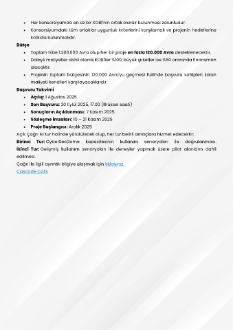 Konsorsiyumdaki tüm ortaklar uygunluk kriterlerini karşılamalı ve projenin hedeflerine
