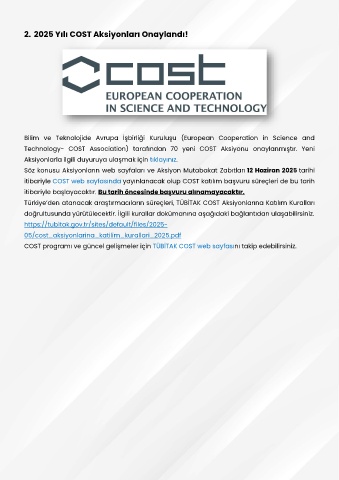 Technology- COST Association) tarafından 70 yeni COST Aksiyonu onaylanmıştır. Yeni