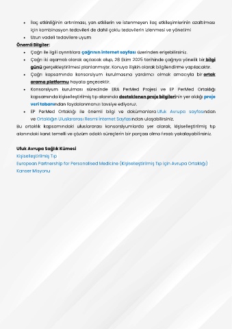 Bu ortaklık kapsamındaki uluslararası konsorsiyumlarda yer alarak, kişiselleştirilmiş tıp