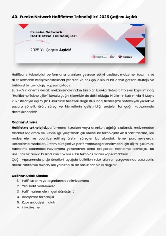 40. Eureka Network Hafifletme Teknolojileri 2025 Çağrısı Açıldı