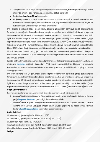 1719- Eureka Döngüsel Değer Zinciri kodlu çağrıya ülkemizden sermaye şirketi statüsündeki