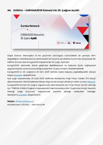 44. EUREKA – EUROGIA2030 Kümesi’nin 29. Çağrısı Açıldı!