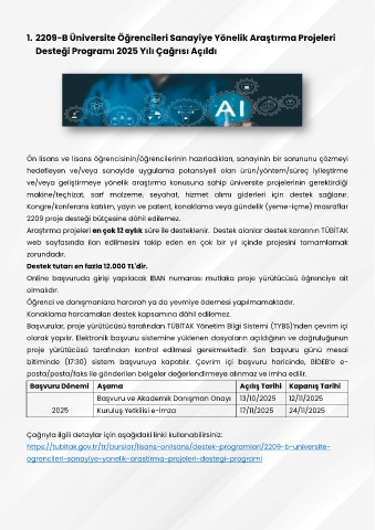 1. 2209-B Üniversite Öğrencileri Sanayiye Yönelik Araştırma Projeleri