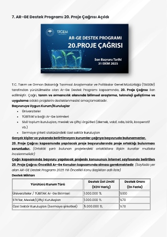 7. AR-GE Destek Programı 20. Proje Çağrısı Açıldı