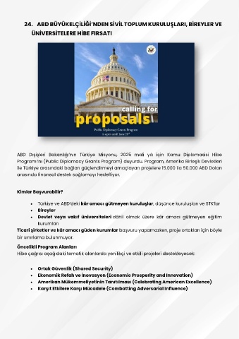 Programı’nı (Public Diplomacy Grants Program) duyurdu. Program, Amerika Birleşik Devletleri