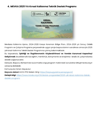 4. MEVKA 2025 Yılı Kırsal Kalkınma Teknik Destek Programı