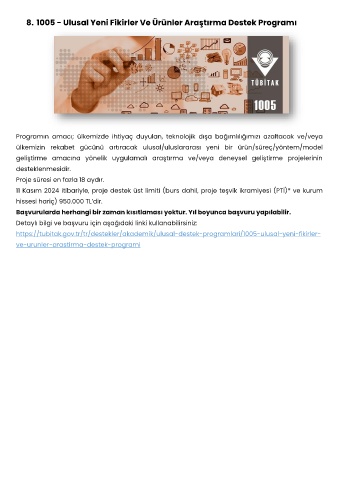 8. 1005 - Ulusal Yeni Fikirler Ve Ürünler Araştırma Destek Programı