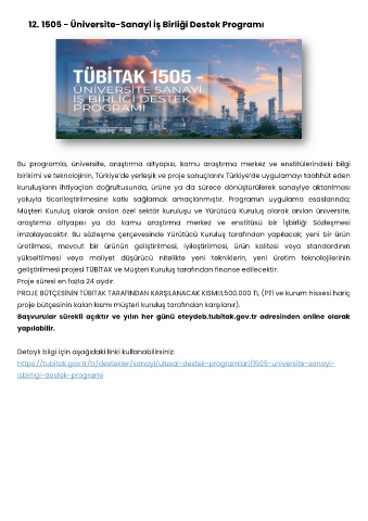 12. 1505 - Üniversite-Sanayi İş Birliği Destek Programı