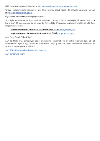 2026 Ortak Çağrısı Genel Sorularınız için: projects.leap-se@agencerecherche.fr