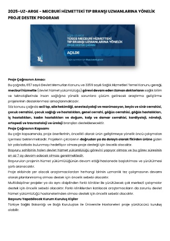 2025-UZ-ARGE - MECBURİ HİZMETTEKİ TIP BRANŞI UZMANLARINA YÖNELİK