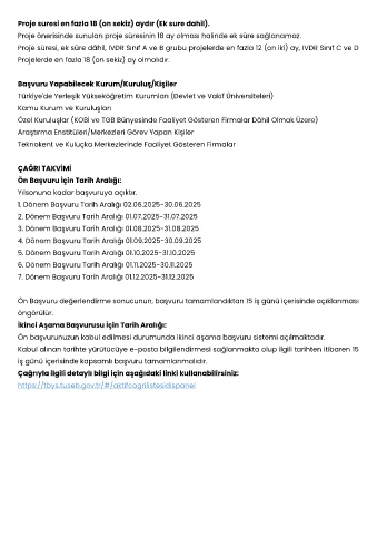 Projelerde en fazla 18 (on sekiz) ay olmalıdır.