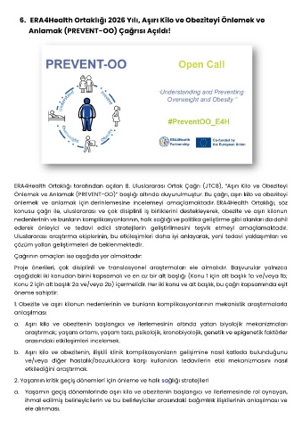 Önlemek ve Anlamak (PREVENT-OO)” başlığı altında duyurulmuştur. Bu çağrı, aşırı kilo ve obeziteyi