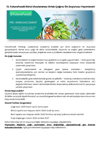 13. FutureFoodS İkinci Uluslararası Ortak Çağrısı Ön Duyurusu Yayınlandı!