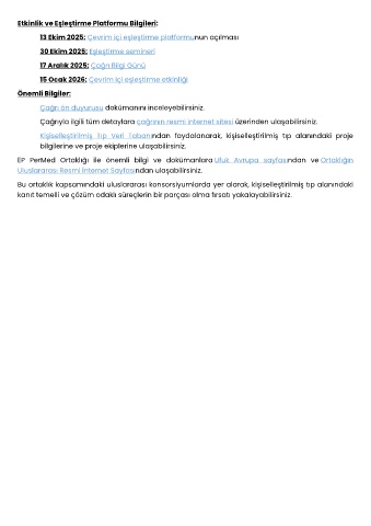Etkinlik ve Eşleştirme Platformu Bilgileri:
