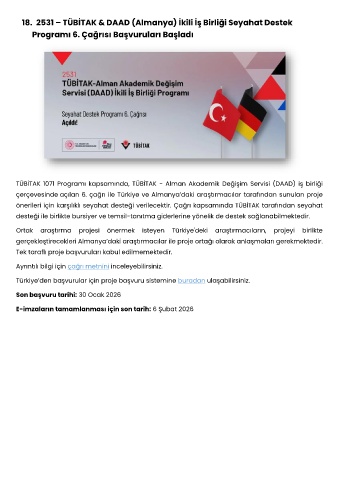18. 2531 – TÜBİTAK & DAAD (Almanya) İkili İş Birliği Seyahat Destek