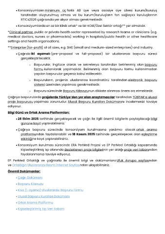 Konsorsiyumlarda en az bir klinik ortak* ve bir KOBİ/Özel Sektör ortağı** yer almalıdır.