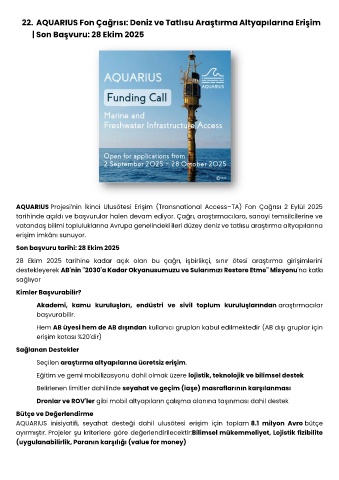 22. AQUARIUS Fon Çağrısı: Deniz ve Tatlısu Araştırma Altyapılarına Erişim