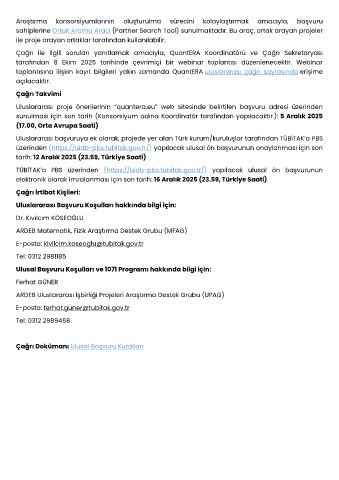 Çağrı ile ilgili soruları yanıtlamak amacıyla, QuantERA Koordinatörü ve Çağrı Sekretaryası