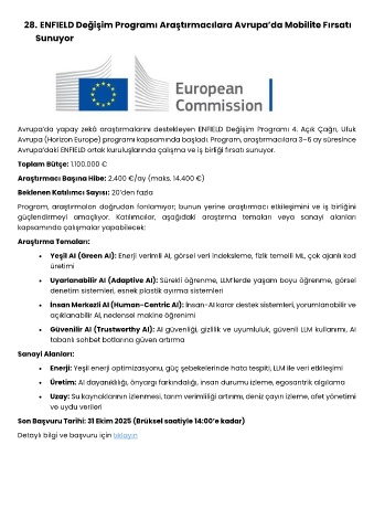 Avrupa’daki ENFIELD ortak kuruluşlarında çalışma ve iş birliği fırsatı sunuyor.
