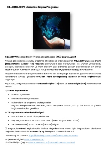 Detaylı bilgi ve başvuru: https://www.aquaserv-ri.eu/transnational-access