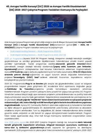 Konseyi (EIC) ve Avrupa Yenilik Ekosistemleri (EIE)alanlarınının güncel (EIC - 2026, EIE -