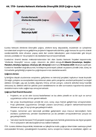 44. 1719- Eureka Network Afetlerde Dirençlilik 2025 Çağrısı Açıldı