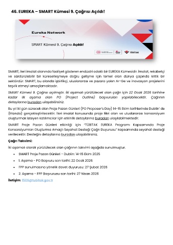 46. EUREKA – SMART Kümesi 9. Çağrısı Açıldı!