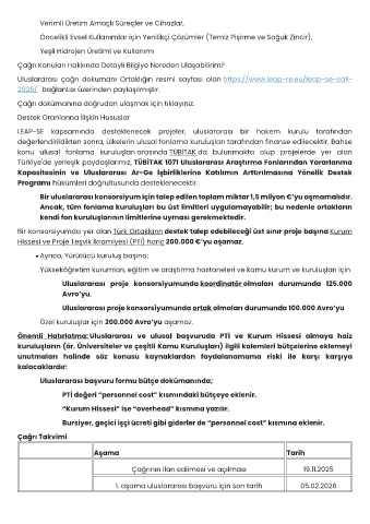 Uluslararası çağrı dokumanı Ortaklığın resmi sayfası olan https://www.leap-re.eu/leap-se-call-